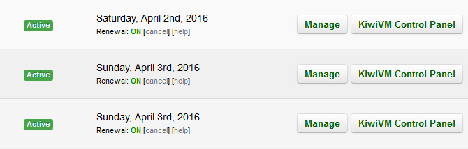 从上图中,我们可以看到在VPS列表中默认都是有一个ON的状态,很多人以为是自动开启自动续费的,其实根据官方的解读任何机器都不会自动扣费的,全部采用用户自主付款模式。这个ON仅仅代表账单到期的时候会通过邮件,以及后台提醒我们需要续费而已,会产生一个续费付款工单。如果我们点击OFF,那就不会给我们推送续费工单。