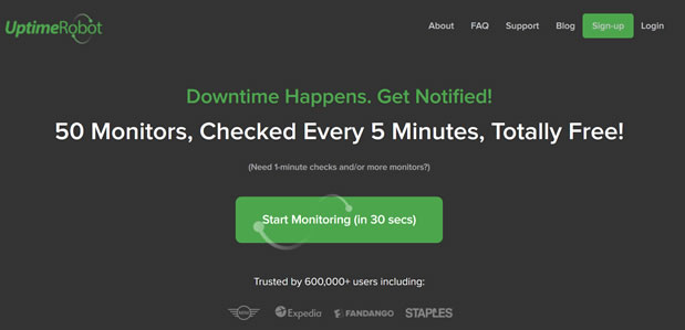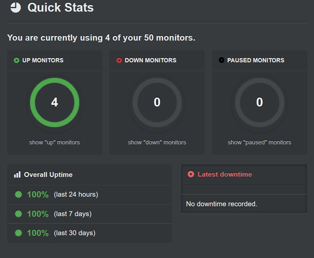 项目多了需要监控服务器状态。UptimeRobot提供免费监控服务,支持50个监控节点和邮件告警。